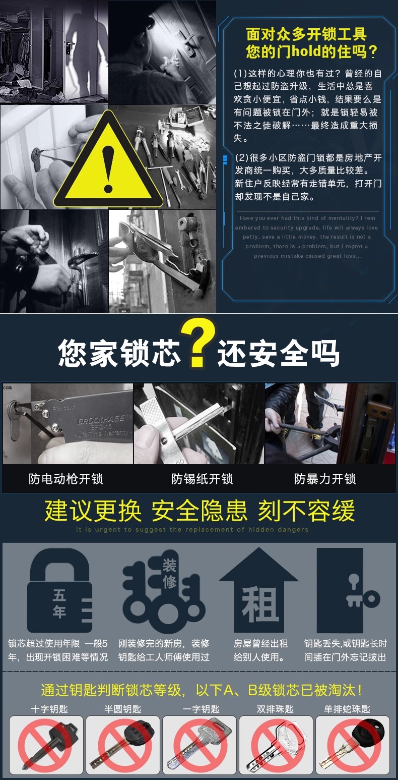 1、换各种国产进口锁芯;